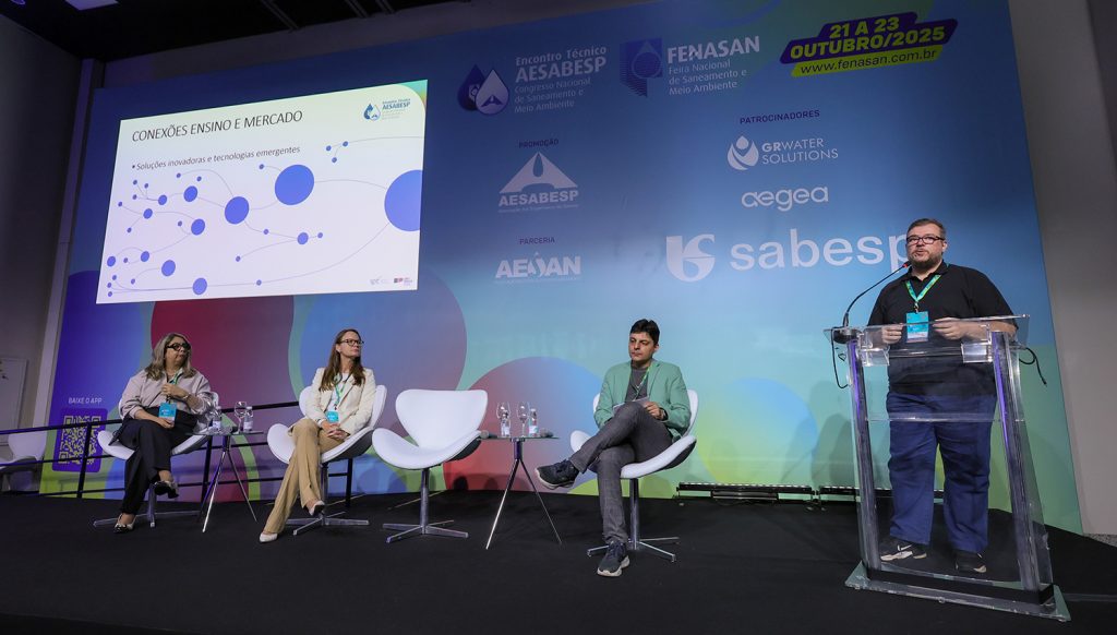 A mesa-redonda 4, “Pesquisa Acadêmica e Formação Profissional: Conectando Ensino e Mercado no Saneamento”, debateu a urgência da pesquisa e inovação. Coordenada e moderada por Nilton Moraes, da USP/AESabesp, contou com as palavras de Ester Feche, que nesta discussão participou na condição de diretora de Serviços de Água e Esgoto, Semil; Luana Pretto, presidente do Instituto Trata Brasil; e Luciano Zanella, professor dos programas de mestrado em Habitação e em Processos Industriais do Instituto de Pesquisas Tecnológicas de São Paulo (IPT).