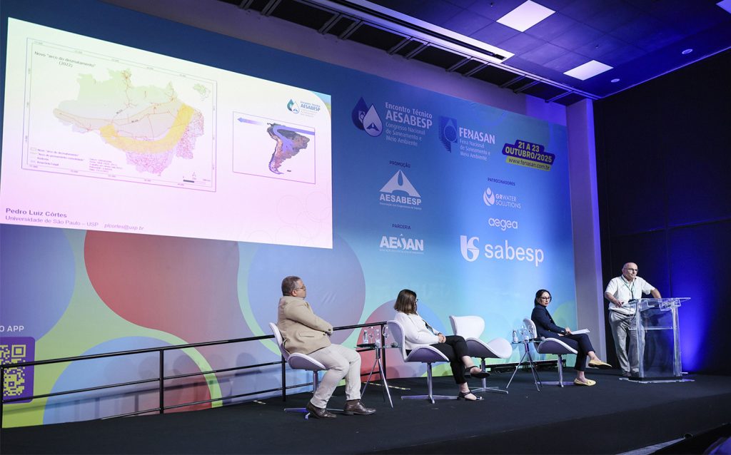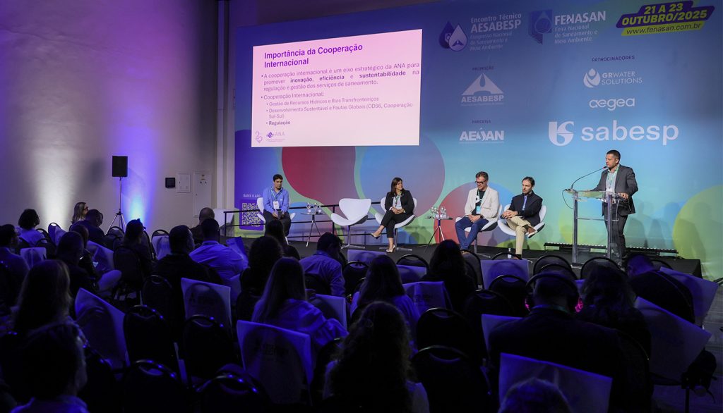 Como parte do 36º Encontro Técnico e Fenasan 2025, evento reuniu profissionais e acadêmicos que detalharam, nesta segunda edição, dias 22 e 23 de outubro, ações institucionais para o futuro hídrico, as diretrizes para o enfrentamento de eventos adversos do clima e o uso de tecnologias como Bioeconomia e cooperação internacional para promover um saneamento mais resiliente e inclusivo. Um dos destaques foi a presença do Professor Francis Lajara De Los Reyes III, da Universidade Estadual da Carolina do Norte, que apresentou avanços no reúso para uso humano.