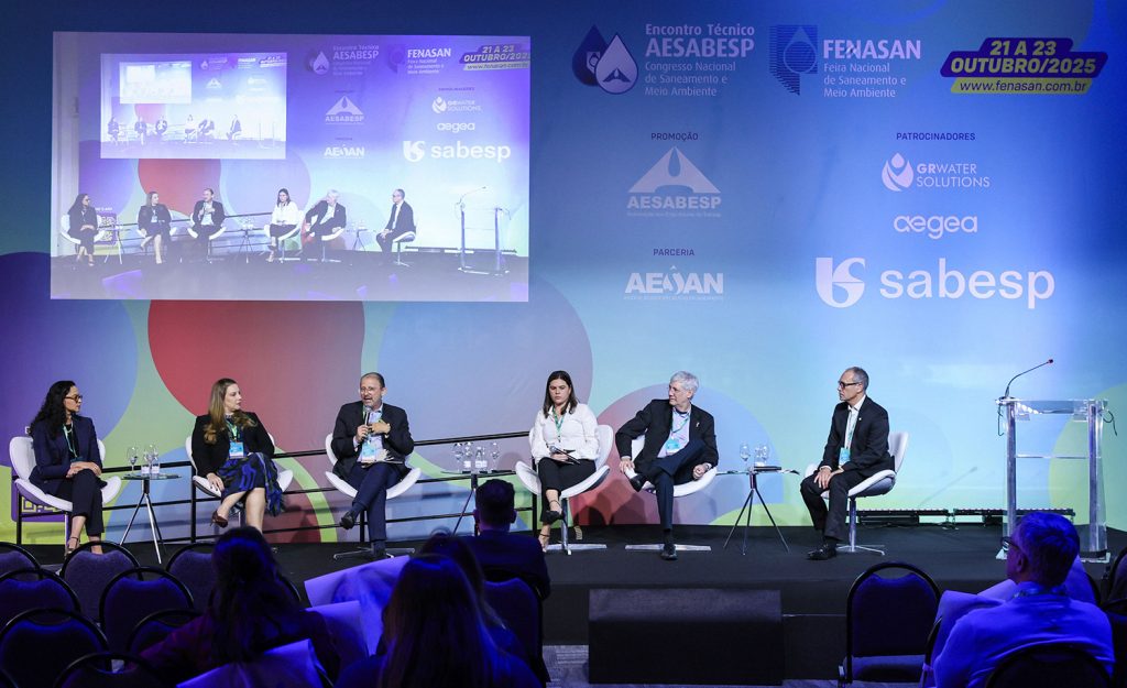 Juliana Collaço, da Arsesp, destacou o alinhamento institucional para lidar com a escassez hídrica, descrevendo a discussão como muito interessante. “Foi uma discussão muito técnica, em torno da circularidade que é necessária e o nosso posicionamento, principalmente no cenário de escassez hídrica”, contou.