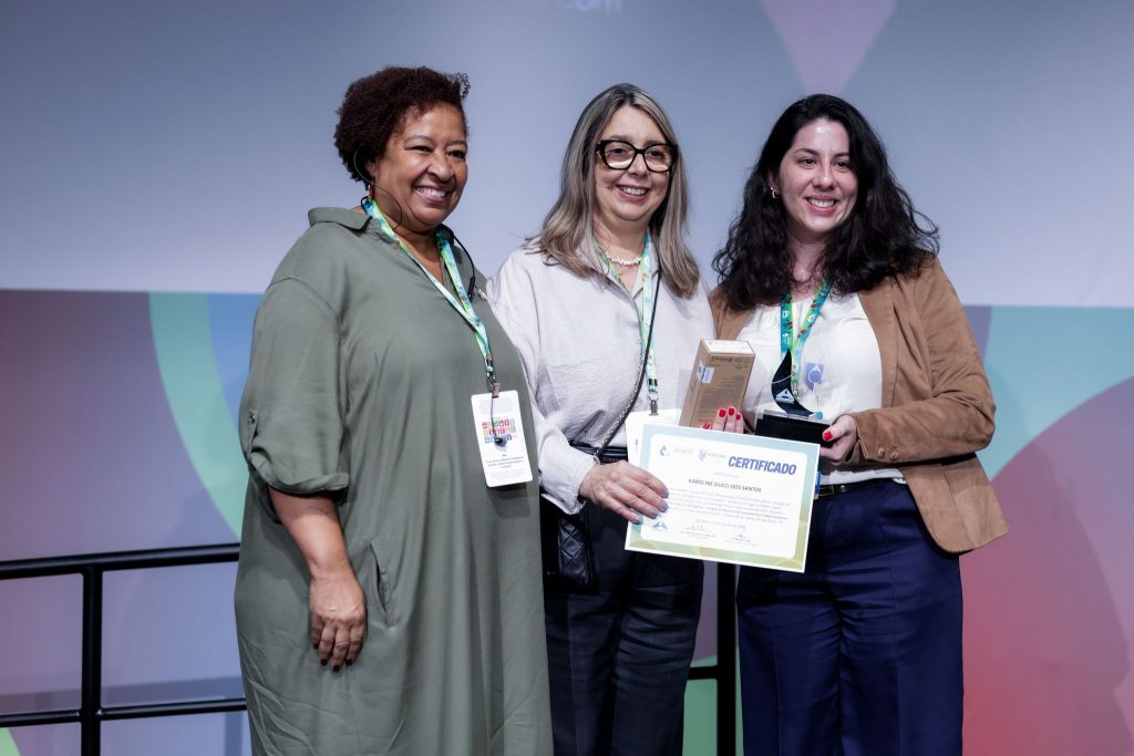 A premiação realizada pela AESabesp reconhece talentos da nova geração do saneamento – e, neste ano, o destaque foi totalmente feminino! Os troféus foram entregues por Ester Feche, diretora Socioambiental e Cultural da AESabesp, e por Marcia Camillo da Cruz, membro da Comissão Organizadora do evento.