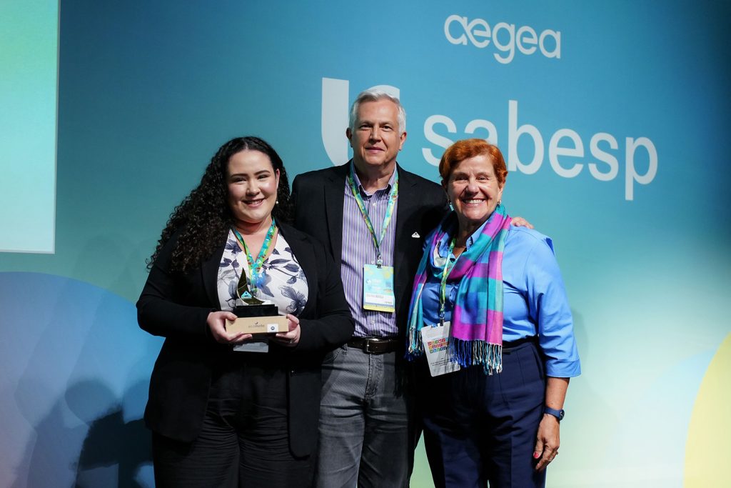 Os troféus foram entregues por Kleber dos Santos, diretor de Comunicação e Marketing da AESabesp; e Sandreli Droppa Leta, membro da Comissão Organizadora da realização.