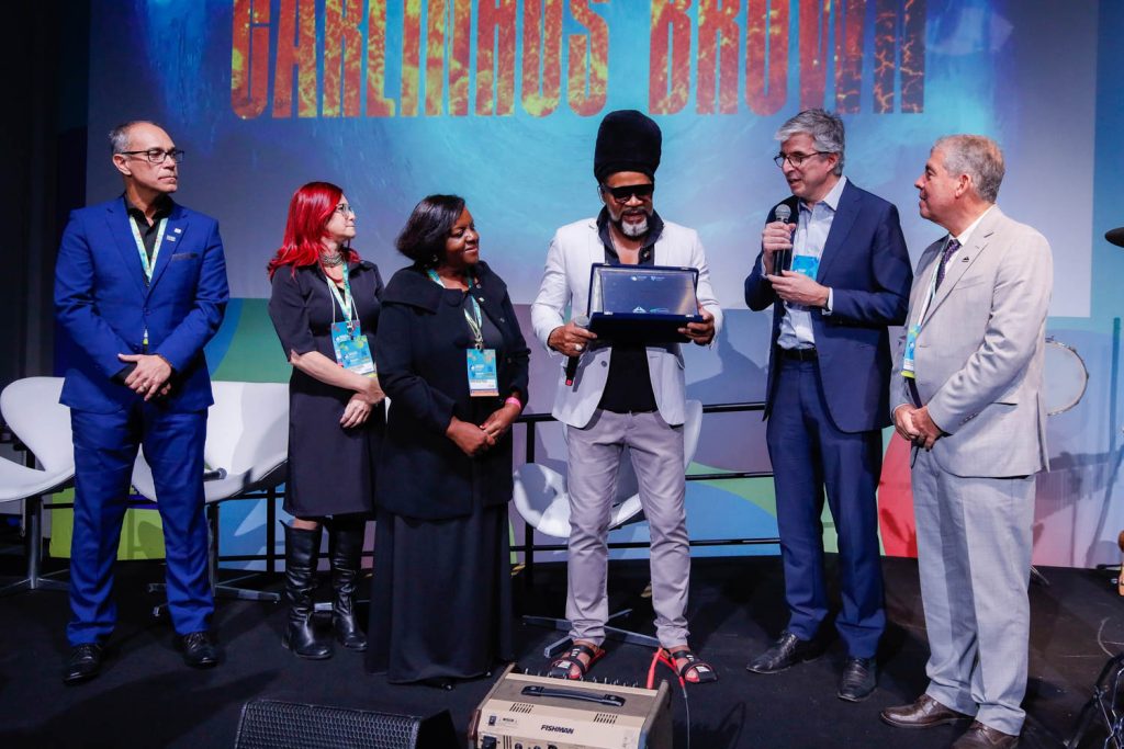 Com sua presença marcante, Carlinhos Brown deixou uma mensagem de otimismo e responsabilidade social, inspirando o público a unir criatividade, conhecimento e compromisso com a transformação ambiental.
